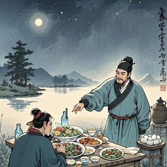 两人走了几十里,葛万疲惫不堪,饥渴难耐。青袍大人见状,随手一指,地上立刻摆出了一桌丰盛的饭菜。葛万惊喜万分,狼吞虎咽地吃了个饱。饭后,大人对他说:“我是大伊山的山神。三年后,你将为国家建功立业。”说完,山神让葛万闭上眼睛,并嘱咐他无论发生什么都不要睁眼。